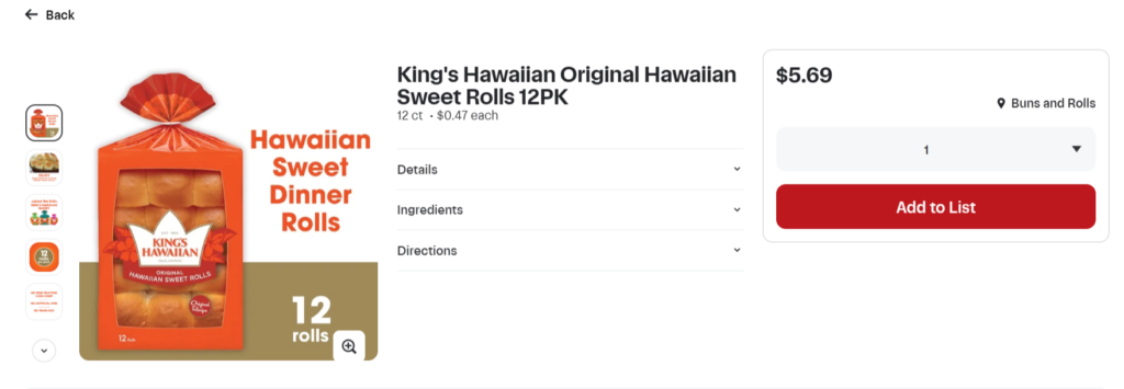Now that you are shopping your store, you will be able to see all of the products that are in stock at the store you are shopping. Once you find the product you are looking for click on that product to show more details. If that is the product you want to shop in store click Add to List