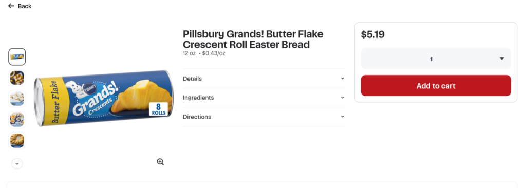 Now that you are shopping your store, you will be able to see all of the products that are in stock at the store you are shopping. Once you find the product you are looking for click on that product to show more details. If that is the product you want to pick up in store click Add to Cart